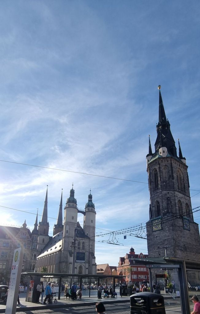 Ankunft am Sonntag also in Halle an der Saale bei spätsommerlichen 26°. Der Weg war nicht allzu weit, somit war noch Zeit für ein Eis auf dem Markt, wo ich mir auch den Rest eines Glockenspiels anhören durfte.