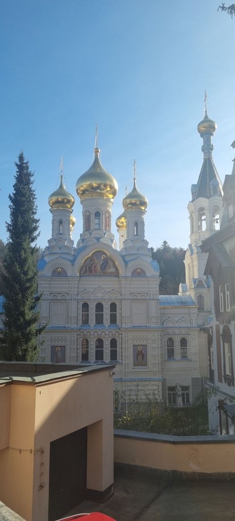 Und ich nahm den Bus nach Karlsbad, um was zu essen und um Geld abzuheben. Denn auch in Tschechien sehen manche Pensionen auf dem Land lieber Bargeld. Also wieder zurück nach Karlsbad! Ich hab Gelegenheit genutzt, und gab mir dann doch noch die orthodoxe russische Kirche angesehen.