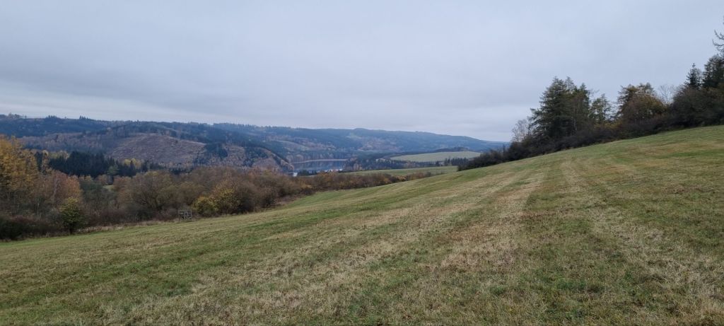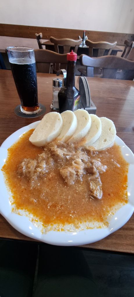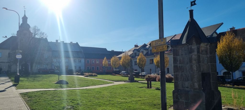 Da mir eine Wegstrecke fehlte fuhr ich ein Stück mit dem Bus weiter. In Bochov noch was essen – und dann aber los zur nächsten Unterkunft in Kozlov. Durch den Wald aber vor allem über Felder und Wiesen. Aber auch 3 km entlang einer Landstraße. Mit Kurven, Bäumen und jeder Menge LKWs, Autos und Bussen. Ich war sehr froh, angekommen zu sein. 😬