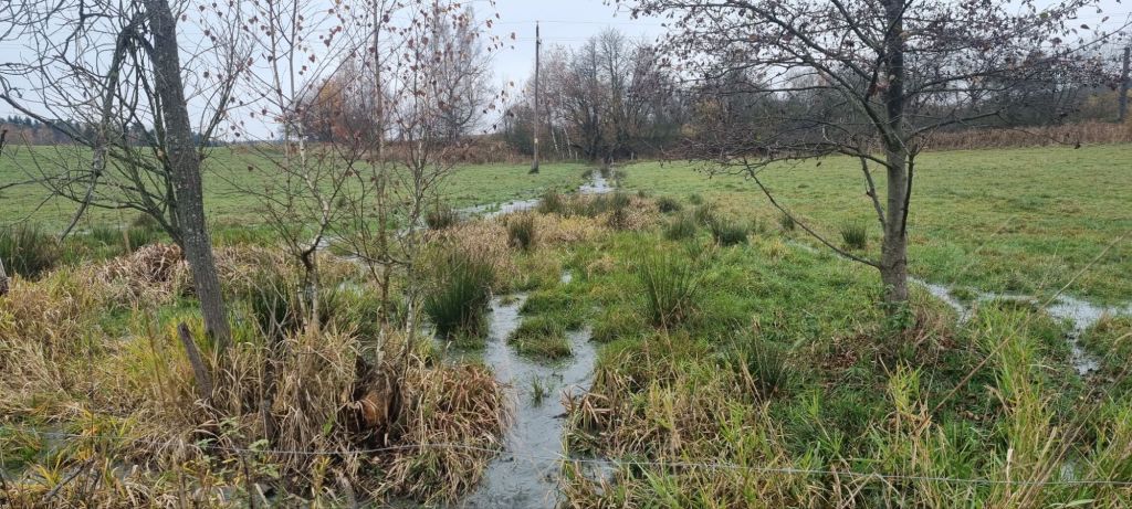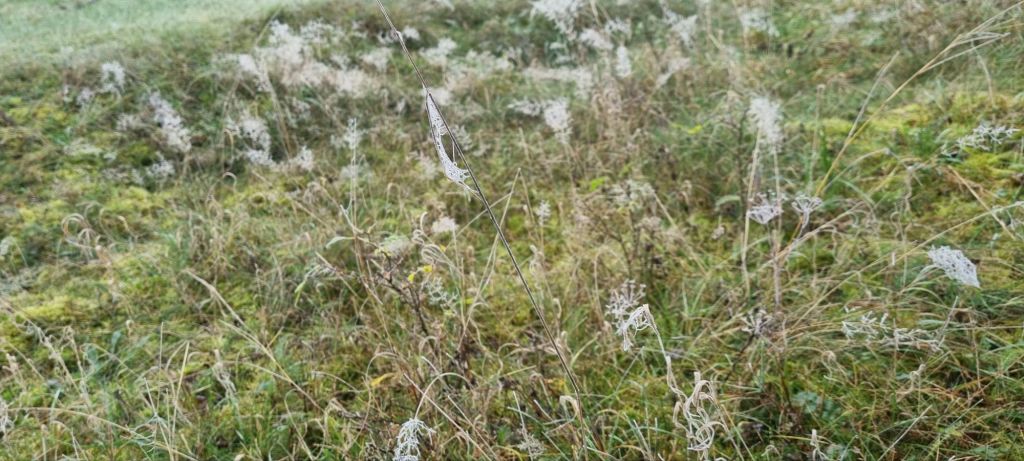 Am nächsten Tag ging es dann weiter. Ich folgte dem Rat der Vermieterin und nahm den Weg über die Wiesen zum nächsten Dorf. So ganz hab ich den Weg nicht bis zum Ende beibehalten können, es ging dann dem Kompass hinterher durch etwas morastiges Gebiet. Das lag aber nicht am morgens noch sehr dichten Nebel, sondern eher an meiner Orientierung. Am Ende kam ich durch die Rückseite auf dem Gelände eines Viehbetriebes raus. Der Bauer schaute etwas irritiert… Auf der Vorderseite war ain Bistro, bei dem ich nicht nur vernünftigen Kaffee bekam, sondern mich auch mit guten Würsten ausstattete. 😉