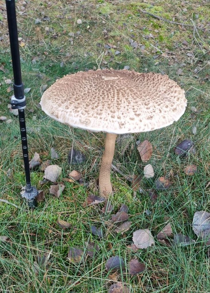 Als ich weiter laufen will entdecke ich eine riesigen Pilz. Wie ich heute weiß, hätte ich ihn mitnehmen können und wie Schnitzel braten. Nun ich habe eh kein Paniermehl, also bleibt er da.