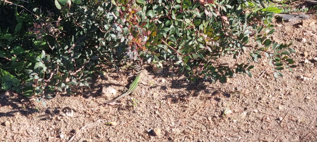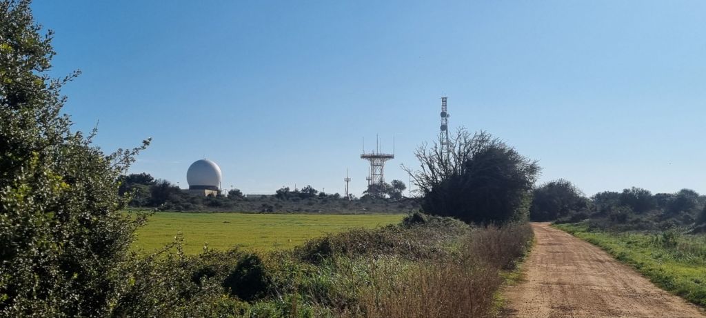 Weiter auf der Landroute der Via Francigena. Die Örtchen am Meer und den Leuchtturm hatte ich ja schon gesehen. Da der Küstenweg wohl teilweise sehr steil sein sollte entscheide ich mich für die Landroute. Weniger spektakuläre Ausblicke, aber sicherer. Und gut bewacht, an einem Posten der Nato vorbei. Mein Pausenblick auf die Ebene war aber auch sehr schön. Wieder ein Verteidigungsturm, aber schon wesentlich älter als die kleinen Geschütztürmchen.