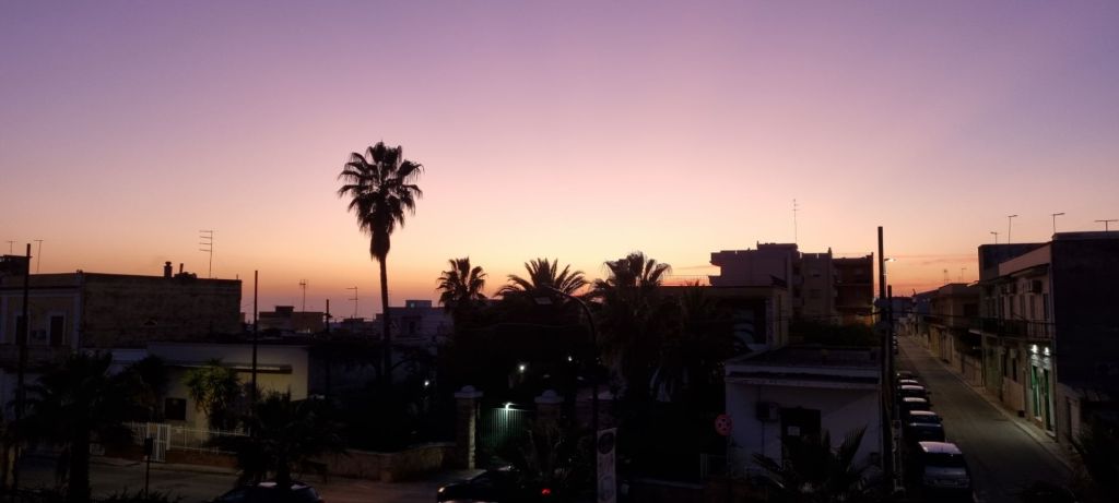 Irgendwann bin ich mal wieder an der Provinzstraße und komme zum Nachmittag in Statte an. Sonnenuntergang, ausruhen, essen. Meine Unterkunft hat unten eine Pizzeria 😉 Abendessen gesichert!