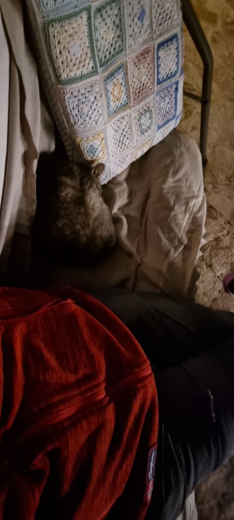 Aber so bin ich pünktlich zum Einbruch der Dunkelheit da und kann diese auf der Hollywoodschaukel mit einer der Katzen entgegensehen.
