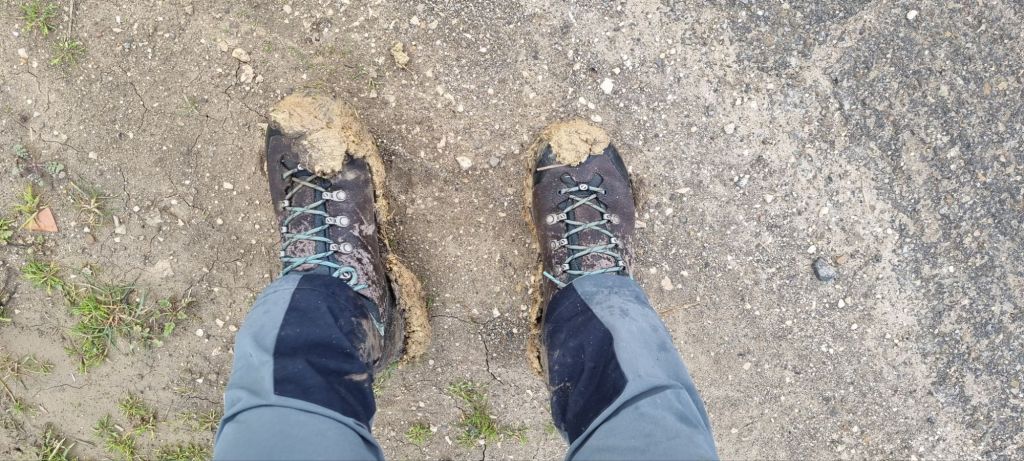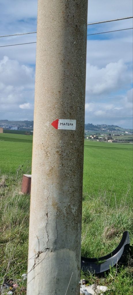 Dann am nächsten Tag steht nun Matera auf dem Zettel. Ich gehe wieder ein Stück übers Feld (gestern auch schon, um abzukürzen). Die Strafe folgt im wahrsten Sinne auf den Fuß. Die lehmige feuchte Erde klebt förmlich an mir.