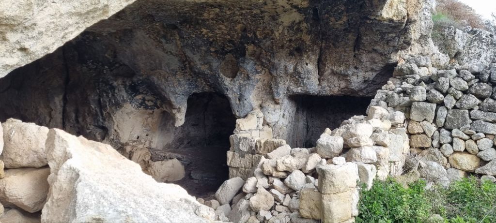 Irgendwann komme ich am Anfang der Schlucht von Matera an. Man sieht die Ruinen einfacher Häuser, die an die Felsenhöhlen angebaut wurden. Es geht den Felsen bergauf. Ich wär ja gern im Tal geblieben, da fließt allerdings ein Bach entlang und oft ohne echte Möglichkeiten teockenen Fußes zwischen Bach und Felsen entlang zu kommen.