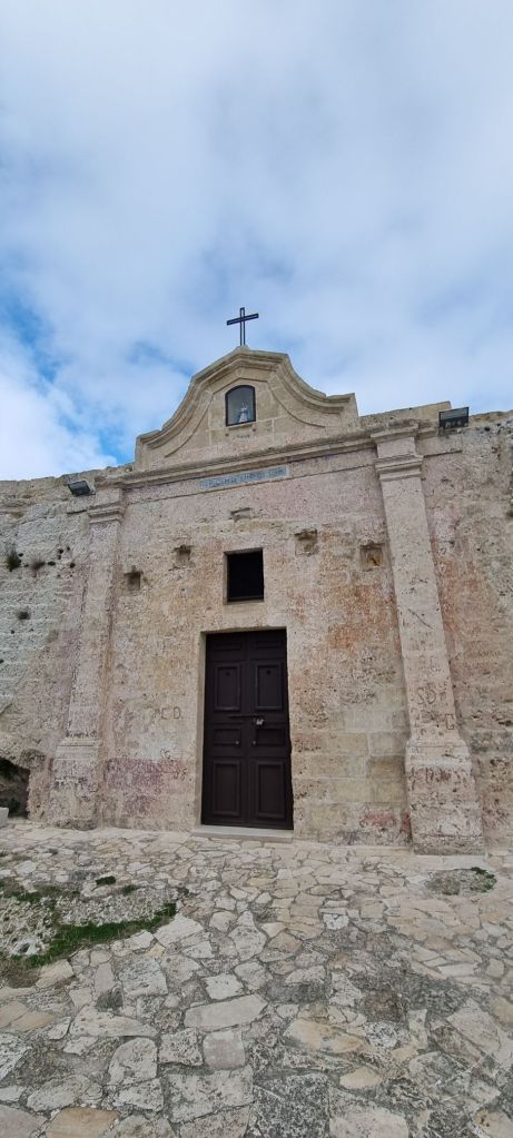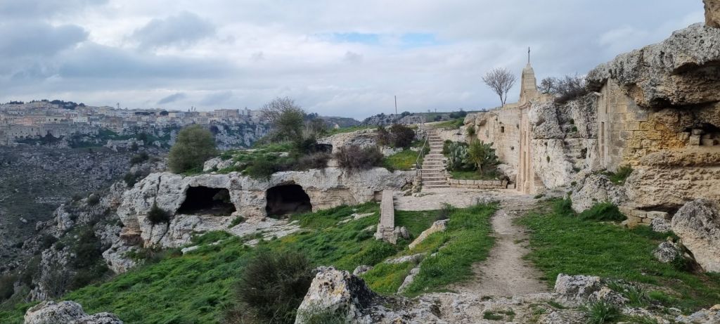 Aber der Blick auf die Sassi und die Stadt lohnt sich. Ich komme auch direkt an einer der Felsenkirchen raus, leider verschlossen.