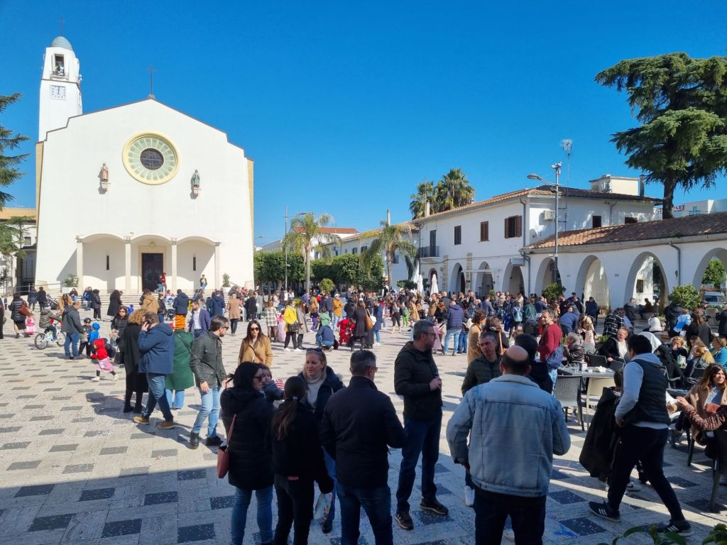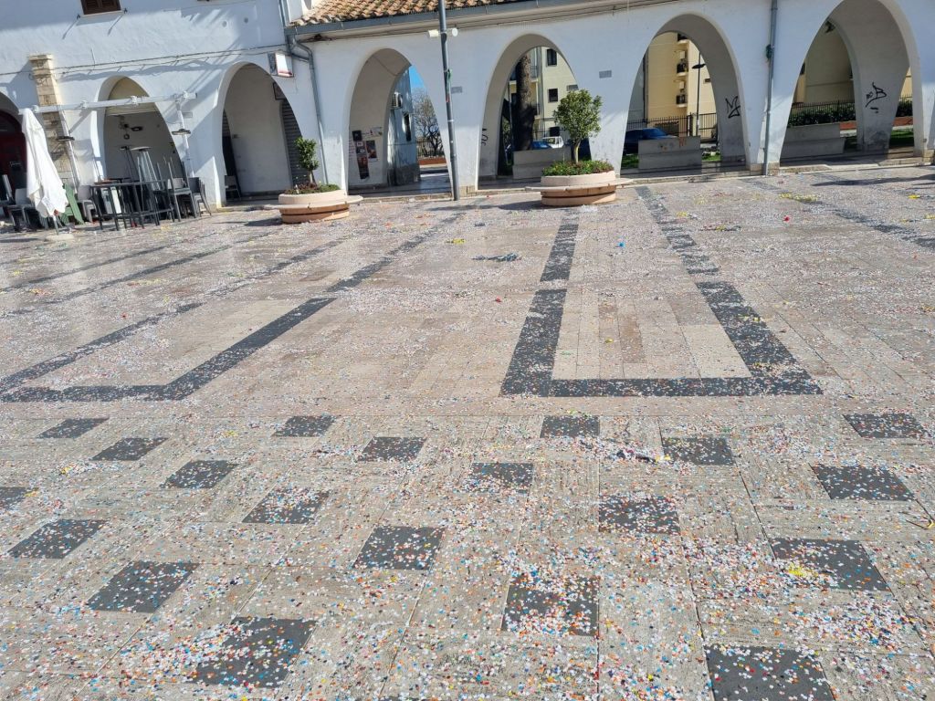 Von Scanzano Junico geht weiter auf der Servicestraße nach Policoro, dem größten Ort entlang der Küstenstraße. Als ich ankomme wird auf dem Platz vor der Kirche gerade der Kinderkarneval beendet. Die Familen sitzen oder stehen noch beisammen. Die Erwachsenen unterhalten sich, die Kinder bewerfen sich mit Konfetti und Sprühluftschlagen. Man findet es ekelig, kann es aber nicht lassen.