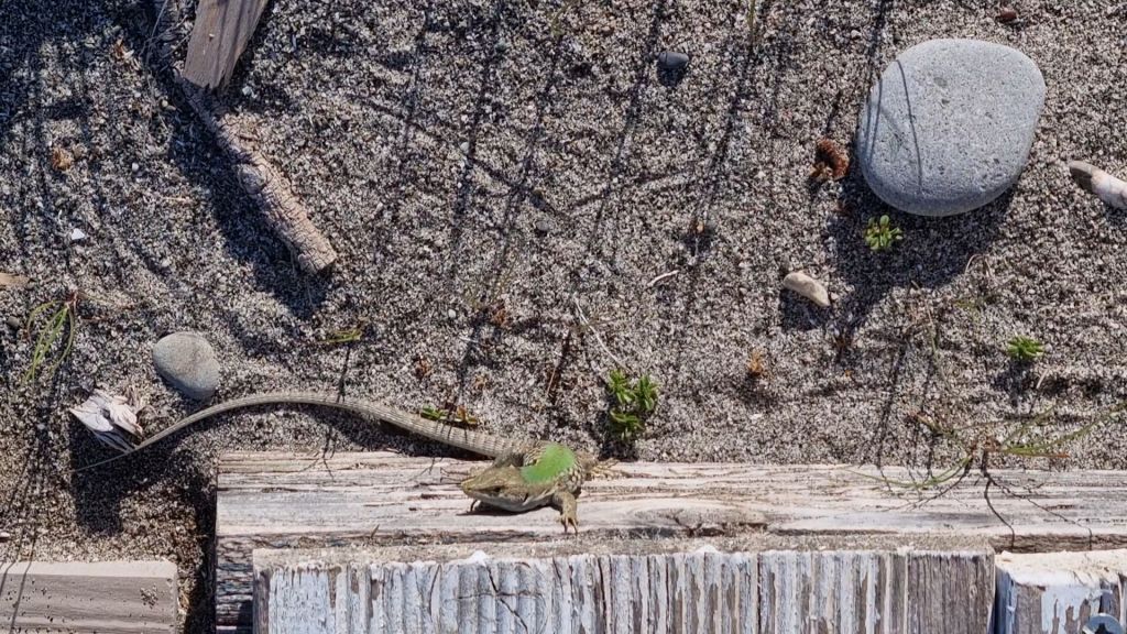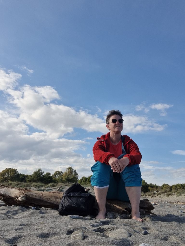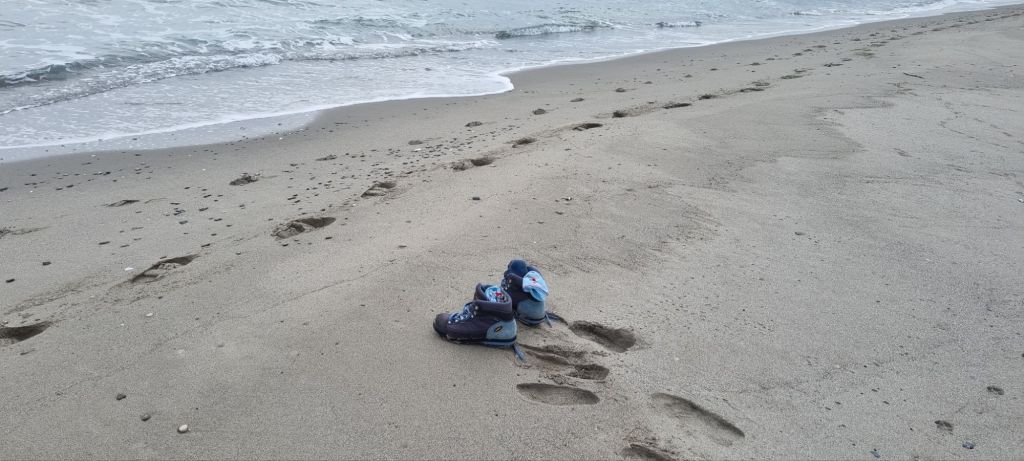 Damit hab ich dann am nächsten Tag am Strand von Nova Siri angefangen. Der Meerwind bringt vieleicht eine zündende Idee. Aber ein Fußbad im Meer und ein Treffen mit dem Strandgecko brachten erstmal nichts… Ganz nebenbei habe ich aber die neuen Wanderschuhe direkt mal im Meer getauft und auf Wasserfestigkeit getestet 😝👍.