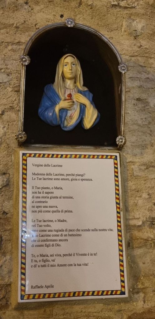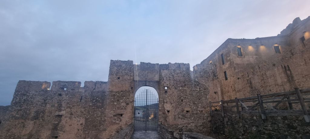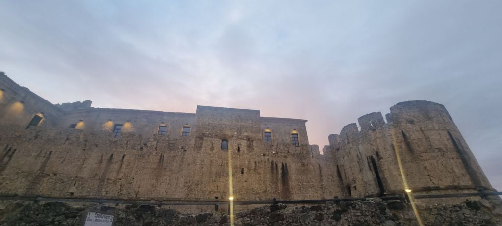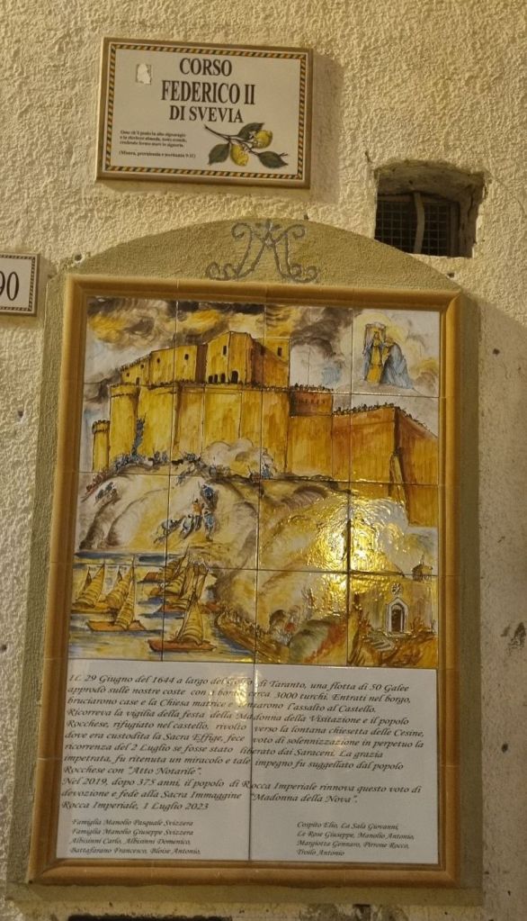 Wir fahren weiter nach Rocca Imperiale. Hier steht ein Schloss, dass Fredericus II für seine Falkenzucht gebaut hat. Es thront über dem Ort. Auch hier kommen wir jahreszeitbedingt nicht bis ran, der Regenbogen und Ausblick entschädigen dafür. Die Straßen hier sind zudem mit Gedichten geschmückt.