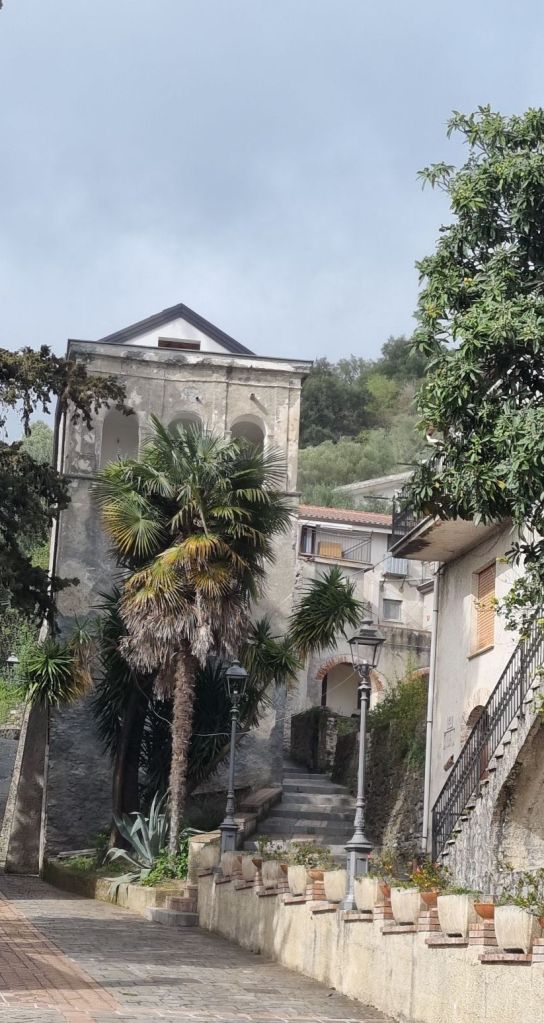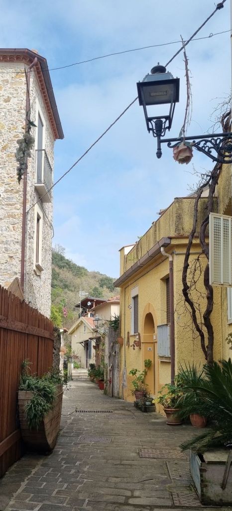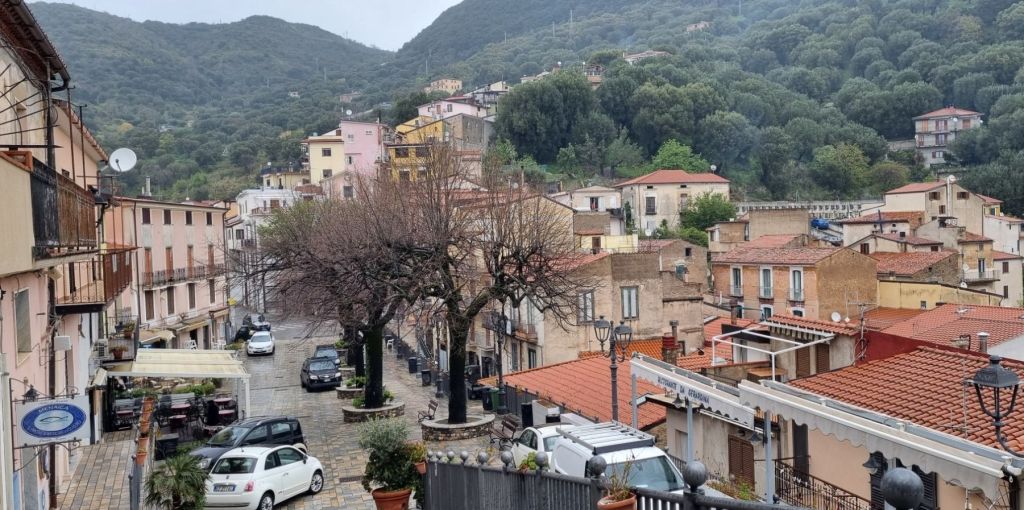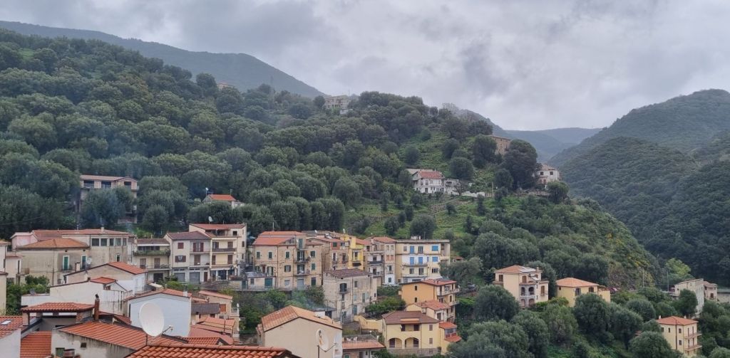Von Scario geht es mit Bus und Bahn weiter. Mit dem Bus bis zum Bahnhof Centola und dann mit der Bahn nach Pisciotta. Der Bahnhof ist ein Stück etwas außerhalb, aber auch hier gibt es einen Bus bis in den Ort. Am Bahnhof Centola kann ich einen kurzen Blick auf ein Geisterdorf San Severino werfen. Alle Dorfbewohner sind verstorben bzw. weggezogen.