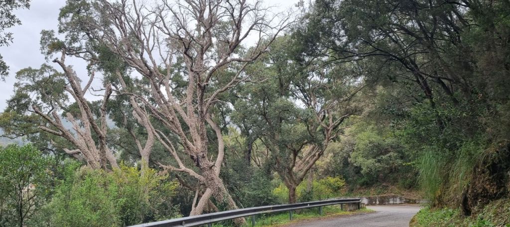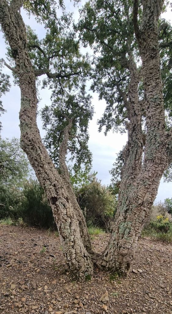 Die erste Station, Ispani, erreiche ich noch zu Fuß. Es geht hinauf und raus aus Sapri. Noch ein Blick ins Tal auf die Bucht und los. Unterwegs komme ich an Korkeichen vorbei, deren unterer Teil der Rinde abgeschaltet wurde. Wie mal im Fernsehen gesehen, nur in echt. Genauso wie die Pflanze der Artischocken, das Gemüse kennt man, die ganze Pflanze noch nicht.