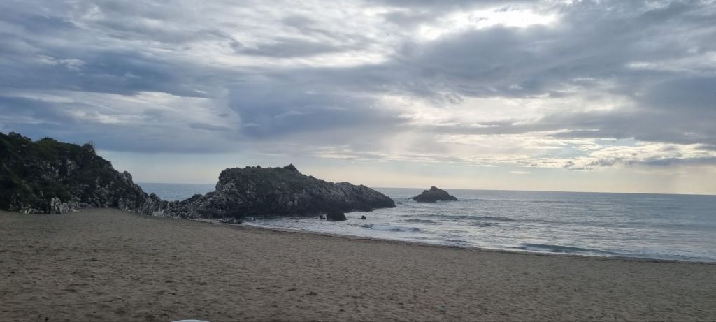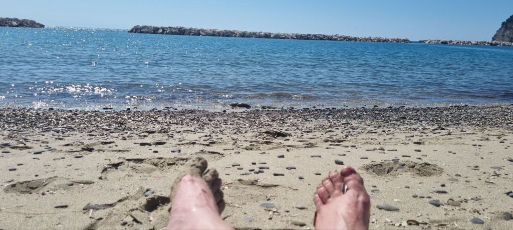 Nächster Halt: Montecorice. Nicht so hoch, wie der Name vermuten lässt. Zum Glück. Die Pause am Strand war sehr erholsam. Zum Glück hab ich diese Pause ausgiebig genossen, meine Unterkunft selbst war etwas in den Berg hineingebaut, außer der Glasscheibe in der Tür gab es kein Tageslicht. Für eine Nacht ging es und immerhin hatte ich buntes Licht in der Dusche 😝