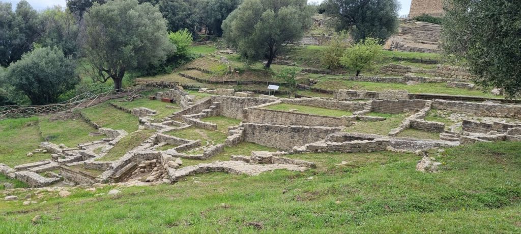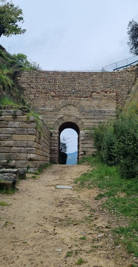 Ich bleibe zwei Nächte und besuche am nächsten Tag die Ausgrabungsstätte Velia. Griechen und dann Römer hatten hier einen Handelsposten mit Hafen und Wachturm, Amphitheater und diverse Häuser. Eine Straße mit Gehweg ist zu sehen, die Reste des Bades, Wachturm. Und das „berühmte“ rote Tor – die „Porta Rosa“. Daa war einst ein Tor und Wachstation vom Tal zum Handelsposten. Nunja… das Rote begrenzt sich wohl auf die Reihe roter Ziegel.