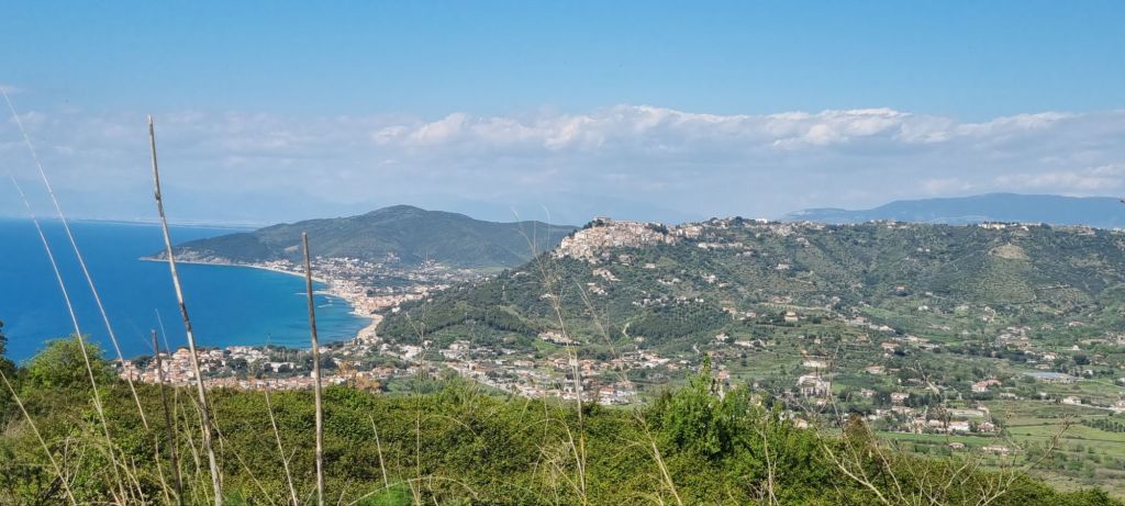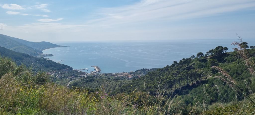 Mein Weg führt mich am nächsten Tag weiter entlang des Meeres bis in den nächsten Hafen, Velia. Man kann nocheinmal den Monte Stella mit der Radarstation unterwegs gut sehen. Der wird noch eine Weile sichtbar bleiben, da er ringsum mit 1.131 Metern der höchste Berg ist. Von dort den nächsten Hügel hinauf bis kurz vor Pollica. Meine Unterkunft wird von einem netten älteren Ehepaar geführt. Ich bekomme sogar ein warmes Abendessen. 🤗 Sie sind sehr interessiert, was mich zu Fuß durch die Gegend treibt. Antwort: Einfach Land und Leute kennenlernen.