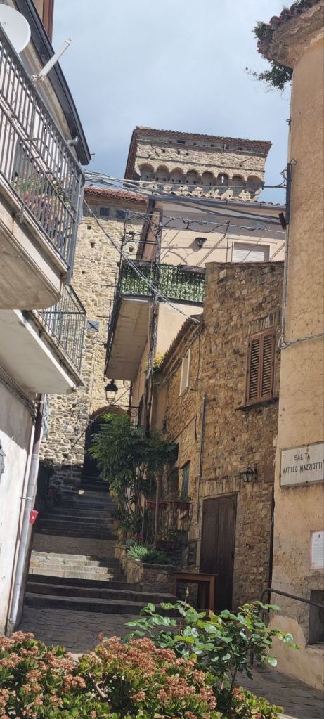 Die nächsten Wege führen mich von Hügel zu Hügel durch das Cilento. Auf dem Weg nach und durch Pollica blüht es an jeder Ecke. Drr Weg führt durch ein zunächst verträumtes, dann docj recht quirliges Örtchen. Das nächste Dorf hatte zwar eine Sitzgeuppenmit Aussicht, aber sonst nix.