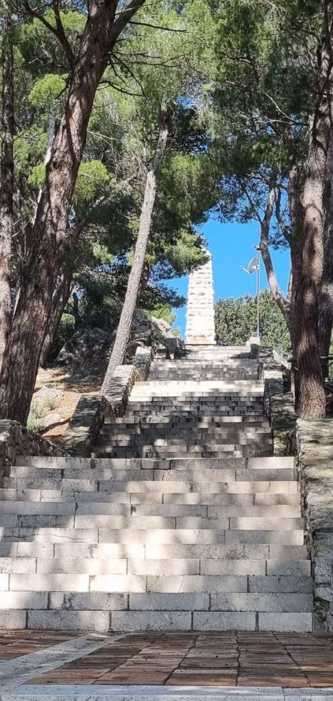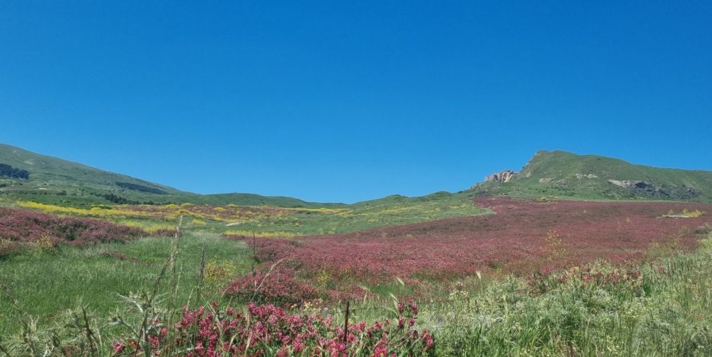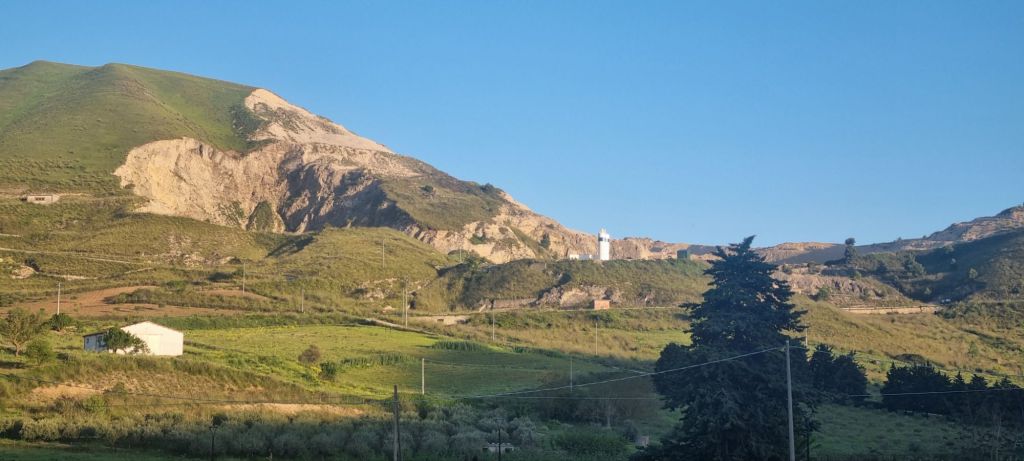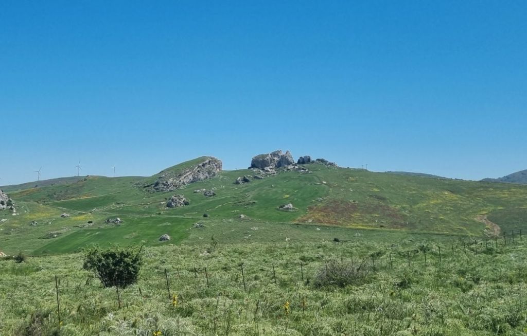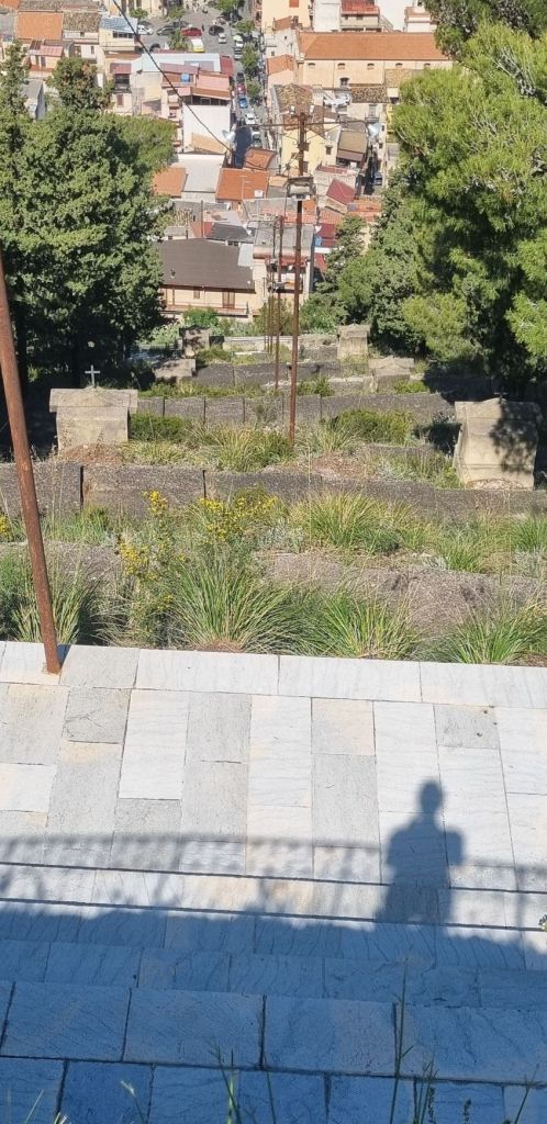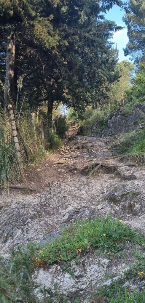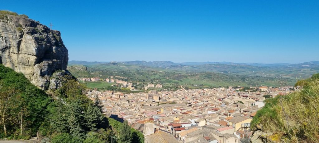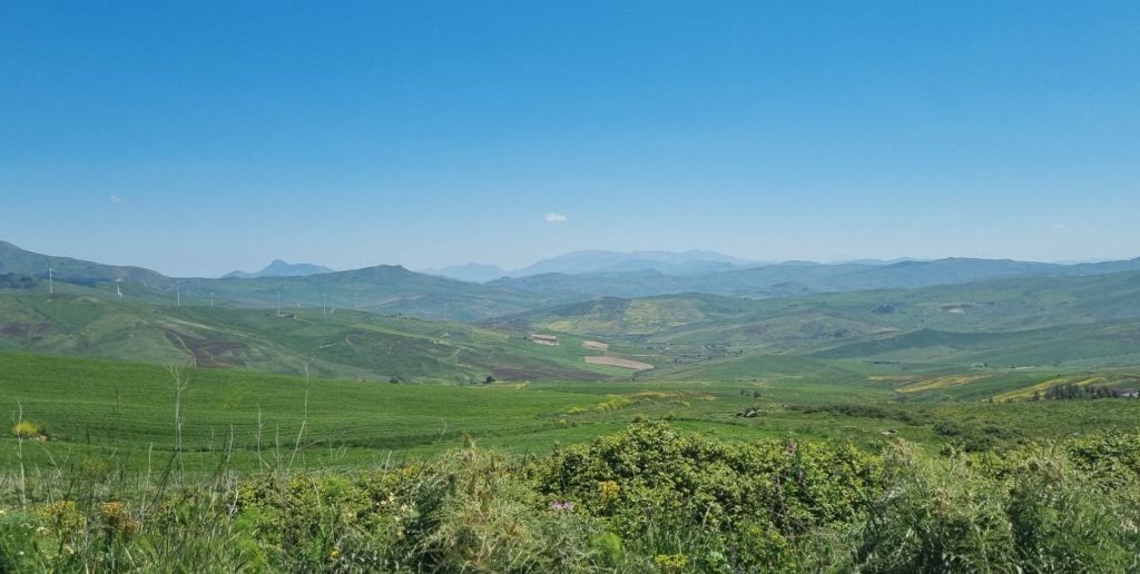 Am nächsten Tag war die Welt wieder sonnig, es ging weiter, natürlich erstmal bergauf, und als erstes an einem Kreuzweg entlang. Kurz danach eröffnet sich mir die grüne Hügellandschaft Nordsiziliens. Grüne Hügel mit Felsen soweit das Auge schauen kann, ab und an einige Gehöffte. Unbeschreiblich schön!