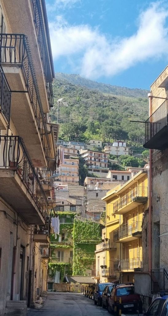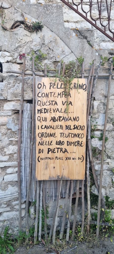 Dann den letzten Akt, erst einen ziemlich steilen Anstieg, Abstieg und wieder hoch, rein ins Örtchen. Da die Herren mich nur ungern kurz vor dem Ziel allein zurück gelassen haben, hatte ich nun eine Telefonnummer von denen und konnte mich so nicht nur in Corleone „angekommen“ melden, sondern gleich auch zum Abendessen verabreden. Mal in Gesellschaft essen ist auch schön. Auch wenn ich fast nix verstehe… 😉