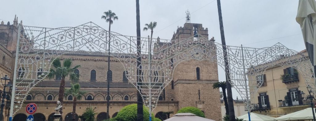 Beim Verlassen des Hotels nieselte es etwas, was aber schnell nachlies. Abet auf dem Weg hiauf nach Monreale traf mich dann schon ein heftiger Regenschauer. Zum Glück fand ich was zum Unterstellen. Oben an der Kathedrale Monreale angekommen rettete ich mich die Flucht in ein Ristorante vor der nächsten Dusche. Es war eh Mittagszeit und so nutze ich die Zwangspause zur Stärkung.