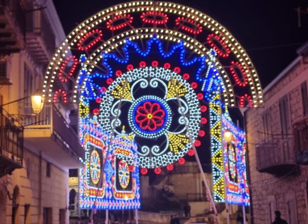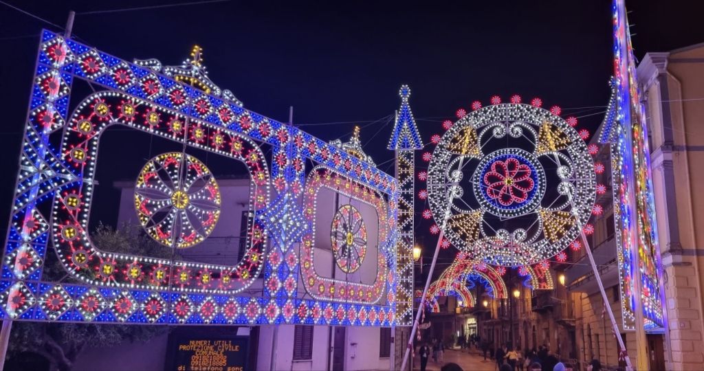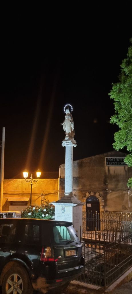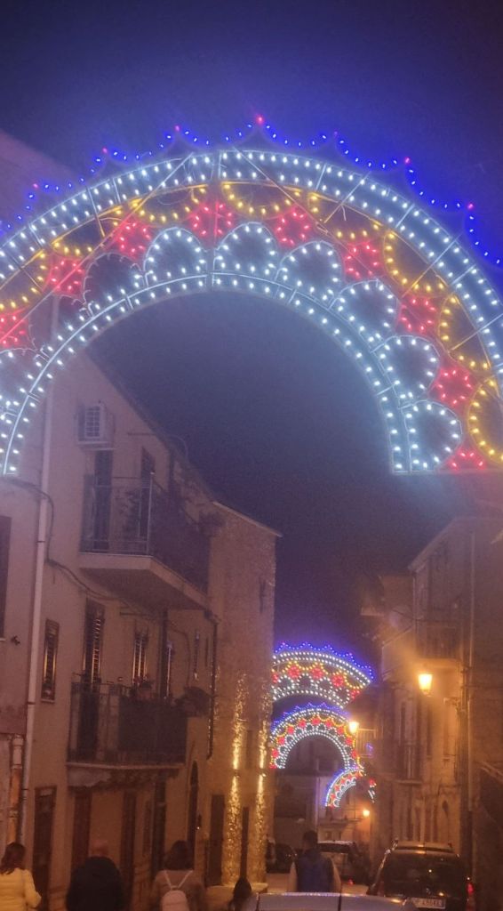 Mein Gastgeber war dann auch gleich da und half mir hinauf ins Zimmer. Noch etwas Eis für den Fuß. Ob ich mit zwei anderen Gästen am Abend zur Pizzeria fahren wollen würde (und wieder abgeholt werden)? Na klar, gern! Die zwei anderen Gäste waren dann Alex und Giuseppe aus Catania, die ich vor und in Castronovo schon getroffen hatte!!! Na so war es zumindest noch ein guter Abend mit gutem Essen und guter Gesellschaft. Auf der Rückfahrt fährt der Fahrer Franco uns noch etwas durchs Örtchen. Die Prozessionslichter werden gerade abgebaut, aber beiden Männer schalten die noch stehenden Lichter extra nochmal an. Die Mädchenaugen aus Deutschland strahlen mit den Lampen um die Wette. Es sieht aber auch zu schön aus. 🤩🤩🤩