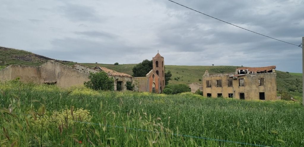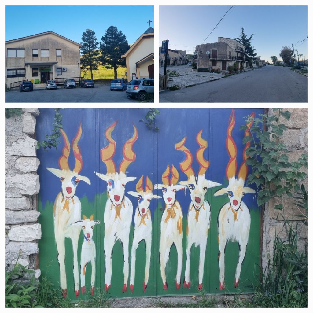 In den Orten Comitini und Aragona ist der Bergbau jedenfalls Thema. Im Pausenort Comitini kann ich nicht nur etwas zum Mittag essen, sondern gleich für mein Abendessen einkaufen. Dafür wird extra der fahrende Gemüsehändler angerufen, er möge nochmal zurückkommen, damit ich meine eine Zucchini und Tomate kaufen kann. Sahne bekomme ich schnell noch im Minimarkt, Nudeln hab ich dabei. Abendessen steht.