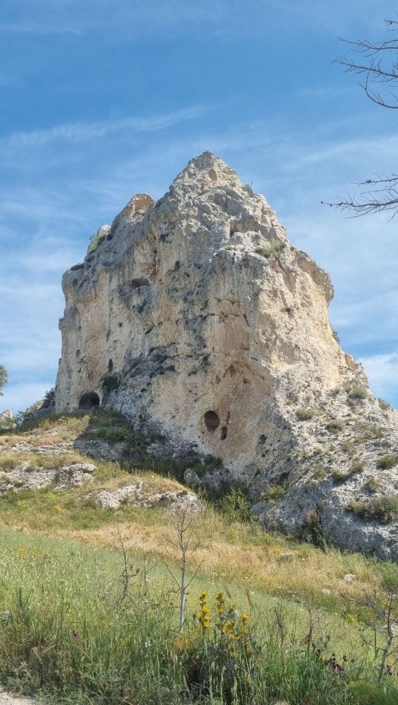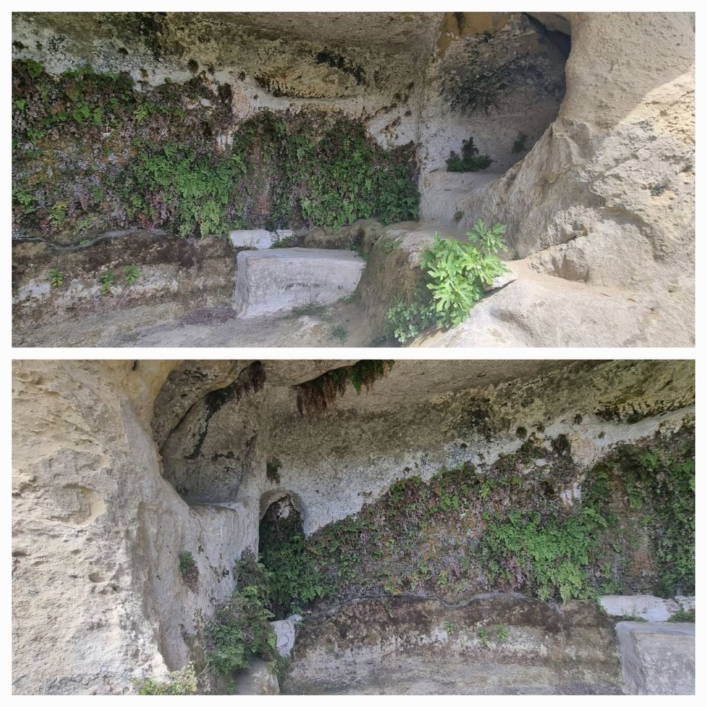 Aber der Weg wurde dann auch wieder besser. Nach einem weiteren Anstieg ging es an einer Felswand mit einigen Höhlen vorbei. Angeblich soll Fra Vitale Lino hier gelebt und zunächst begraben gewesen sein.