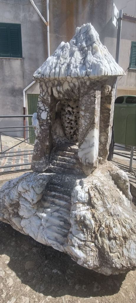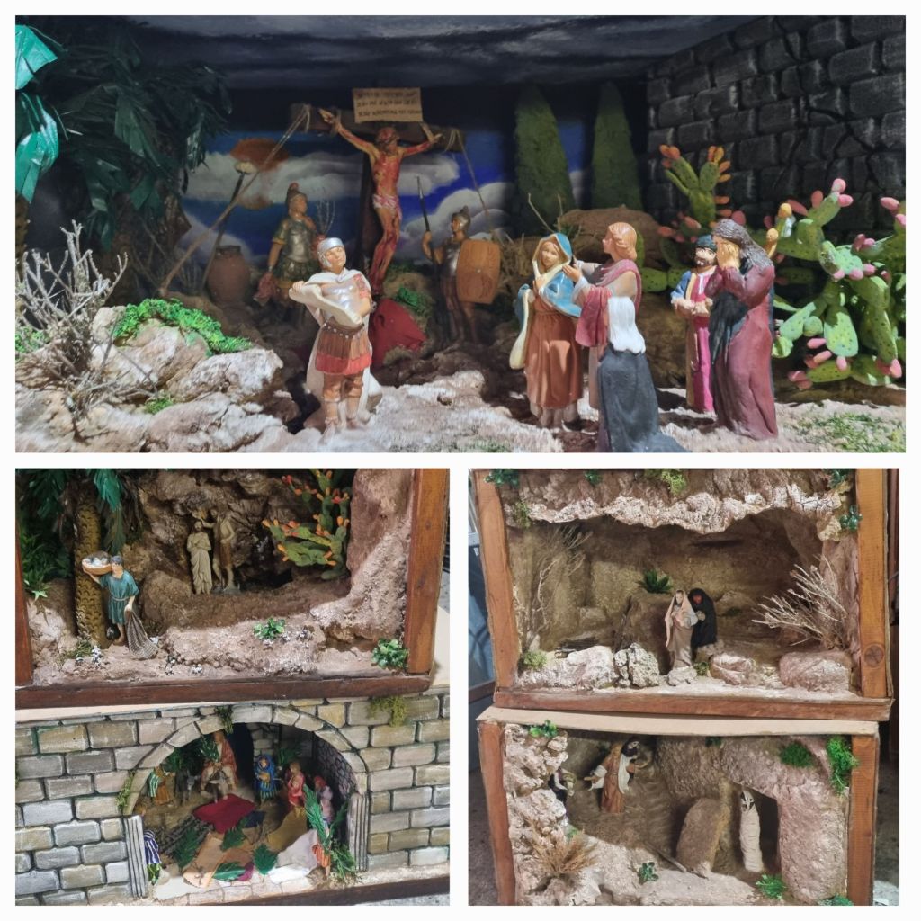 Zuvor mache ich meine Runde durch den Ort. Auch hier ist reichlich Kunst vorhanden und ich komme an einer Künstlerwerkstatt vorbei, in der in Kartons aus Pappmaché kleine Panoramen gebaut werden. Hauptsächlich Szenen aus dem Leben Jesu. Sehr interessant.
