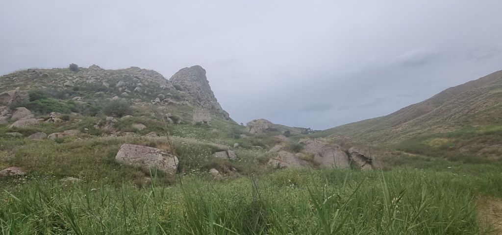Also in den Wanderweg einbiegen, an Feldern vorbei und um einen Felsen herum. Und natürlich ordentlich bergauf. Oben gibt es zumindest einen vernünftigen Weg und ich komme an einem Gebäude vorbei, an dem ich nicht herausbekommen kann, was es eigentlich ist oder war. Es sieht aus wie eine Sternenwarte aber hier gibt es wohl auch alte Bergbauhütten.
