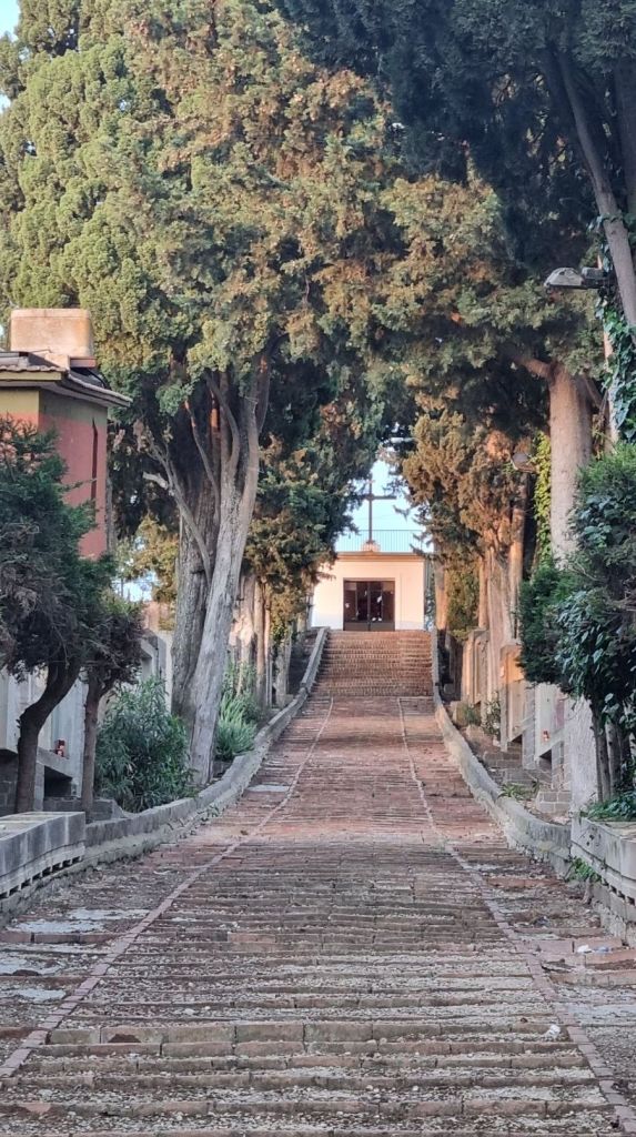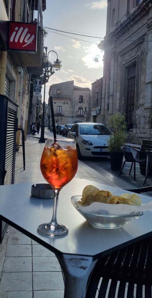 Kurzer Blick noch in die Kirche, bevor auch dort Mittagspause ist, und es geht weiter. Letzter Abschnitt des Weges mit rund drei Kilometer bis Grotte. Im Ort angekommen begrüßen mich quasi die älteren Männer auf der Bank vor der Kirche. Ich bin froh, angekommen zu sein und dankbar über meine Entscheidung, die Etappe zu teilen hier einen Stopp einzulegen. Bei dem Gedanken, jetzt vielleicht nochmal 13 Kilometer laufen zu müssen … Danke nein. Dann lieber einen Aperol in der letzten Sonne am Nachmittag ☺️.