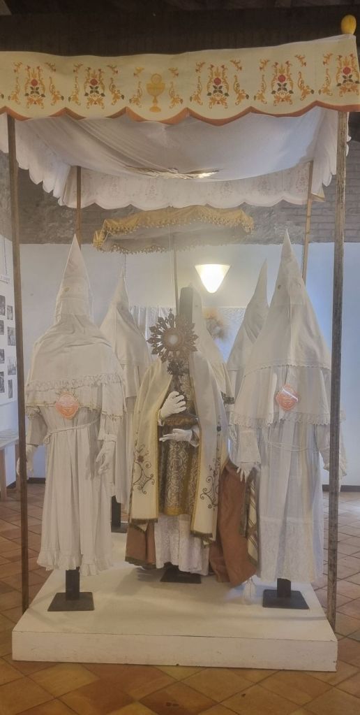 Es scheint als ob die Prozessionssaison anfängt. Auch hier ist Stadtfest und die Kirche und der Vorplatz sind mit Lichtern geschmückt. Hier ist es ein richtig kleiner Rummel und ich lasse es mir nicht nehmen und fahre eine Runde auf dem Kettenkarussel.