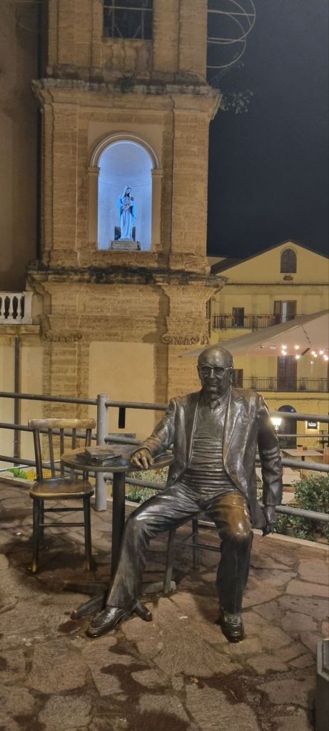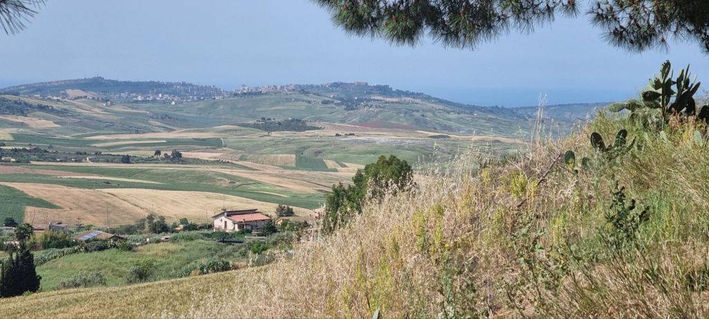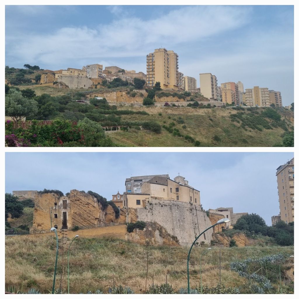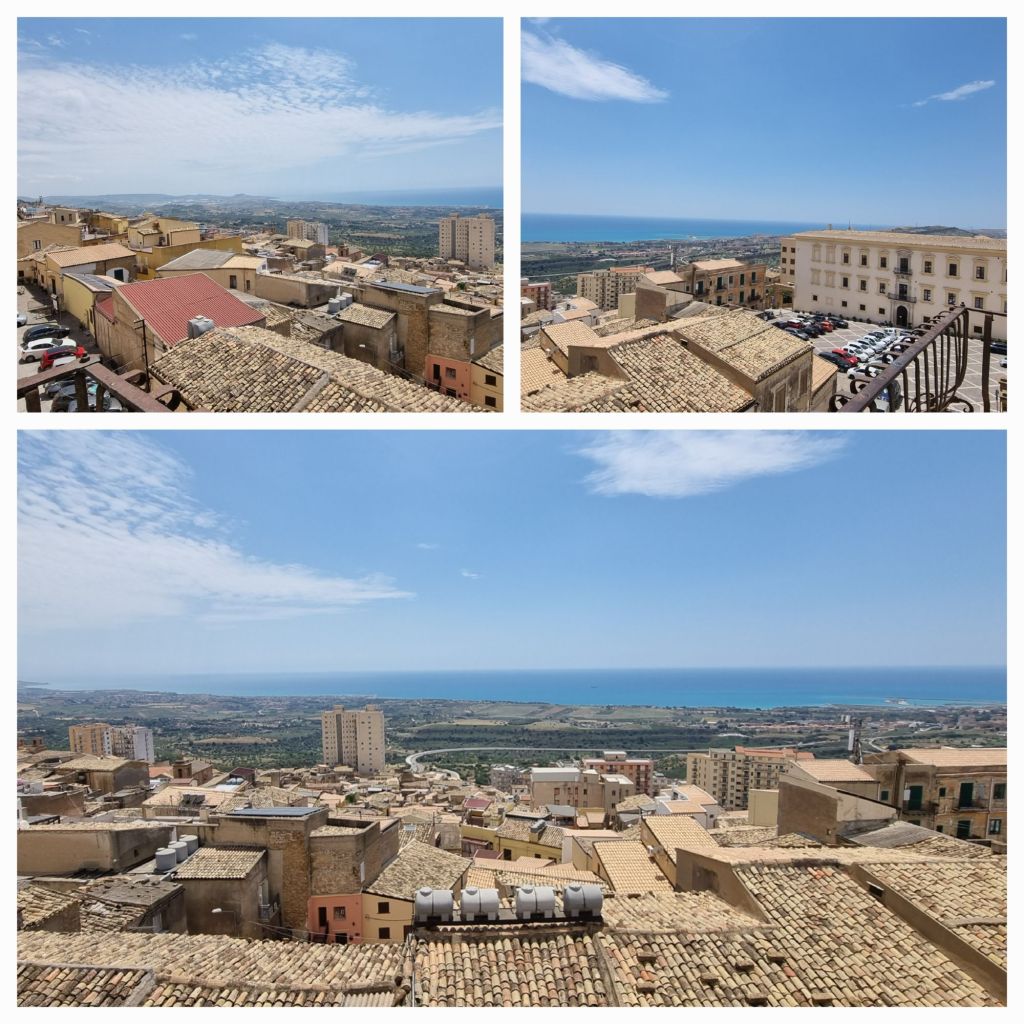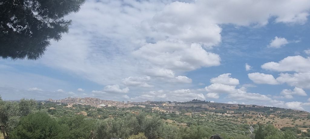 Mein Pausenort heute heißt Joppolo Gianciaxio. Ein kleines Dorf, das einen schönen Ortskern mit kleiner Fußgängerzone hat. Am Caffé bekomme ich nicht nur was kühlen zu trinken, ich schaue auch den alten Männern beim Karten spielen zu. Bis einer nach dem anderen abgeholt wird oder selbst nach Hause fährt. Mittagszeit. Ich mache mich auch wieder auf den Weg, es ist noch ein ganzes Stück. Aber ich habe Agrigento wieder im Blick. Die Skyline erinnert mich an ein Schiff. Das „Bug“ entpuppt sich im Laufe des Weges allerdings als Felsen 😉