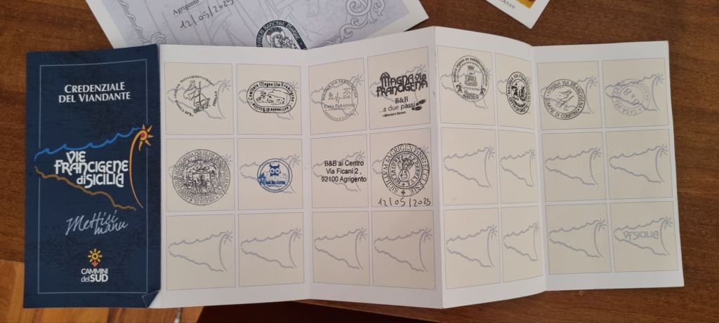 Piano Piano! So starte ich in Agrigento. Die letzten Tage waren anstrengend genug. Bei meinem ausgedehntem Frühstück laufen mir zwei Mitwanderer, die ich ebenfalls in Sutera getroffen hatte, über den Weg. Ich bekomme noch den Hinweis, wo ich mir meinen letzten Stempel und mein Testomonium abholen kann. Noch ein Foto zusammen und dann heißt es Abschied nehmen. Die beiden reisen heute direkt wieder nach Hause.