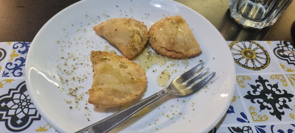 Am Abend dann mal die Pizzaria an der Hauptstraße. Soviel gab die Karte im Hotelrestaurant für mich nicht her. Und hier war nicht nur die Pizza super lecker, auch das Dessert frittierte Gnoggi gefüllt mit Honig und Riccotta. Lecker!