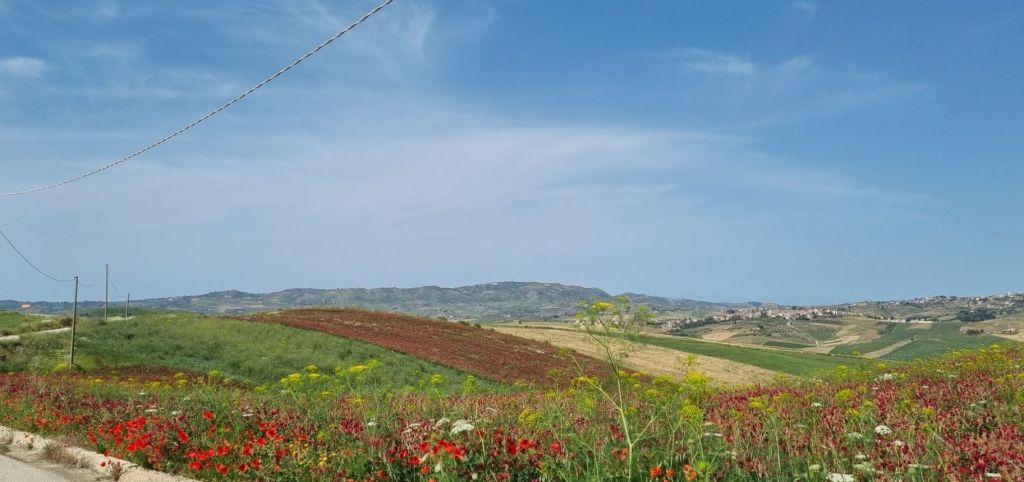 Dle letzte Etappe der Via Francigena steht an, von Aragona nach Agrigento. Etwas mehr als 19 Kilometer nachmal, aber dann bin ich am Ziel. Natürlich ist mein Weg auch diesmal erstmal bergan zum Ort hinaus. Aber dann geht’s über die ruhige Straße entlang an Feldern mit Blumen in allen Farben. Ich komme zu dem Schluss, das Sizilien jetzt im Mai wirklich sehr schön ist und sehr zu empfehlen. Schon allein wegen der vielen Blumen auf den Feldern.