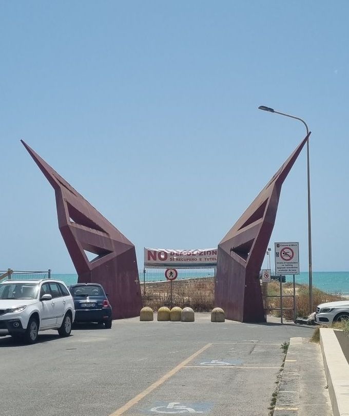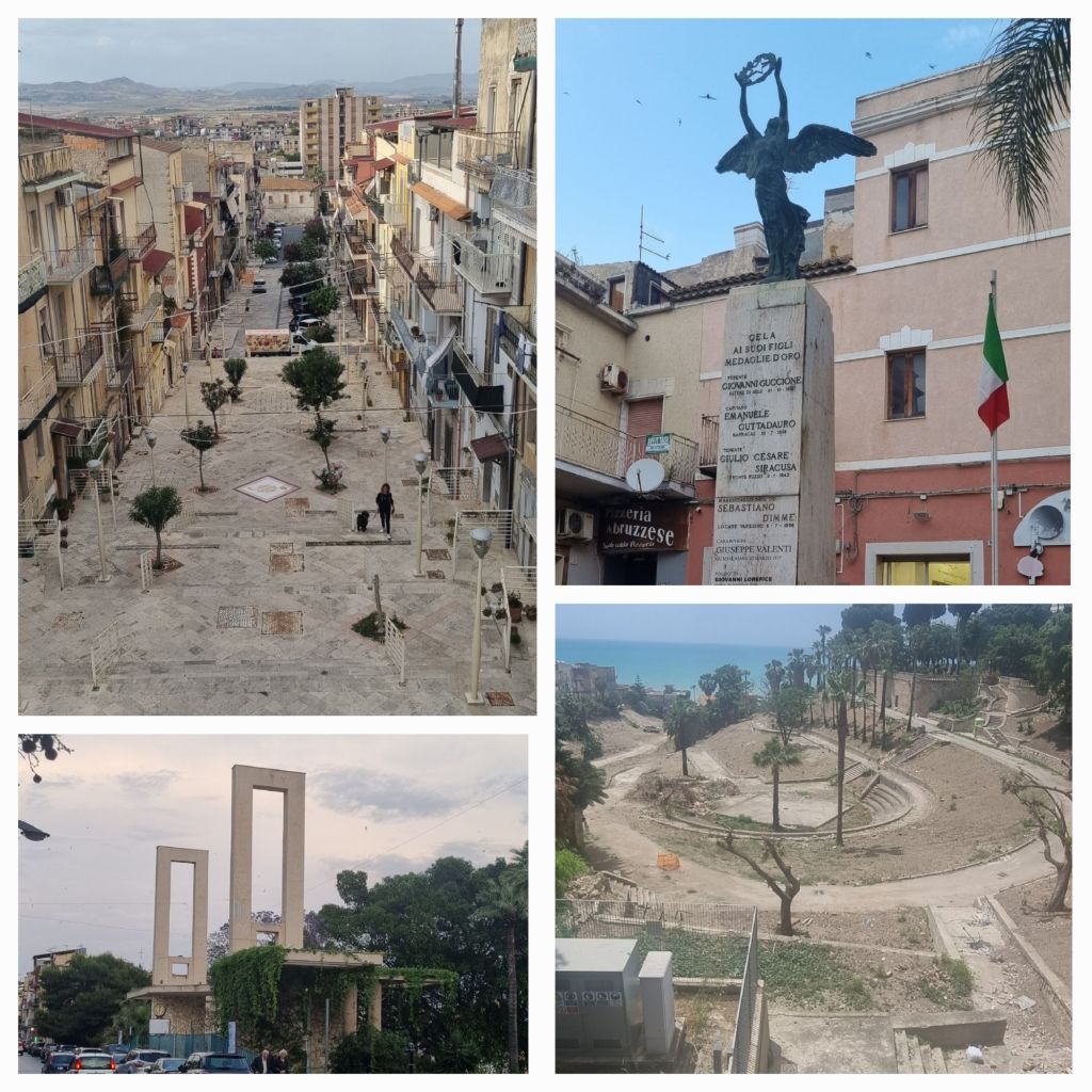 Gela ist eher übersichtlich. Die Hauptstraße mit diversen Läden und Restaurants, ein paar Nebenstraßen. Die Stadt zieht sich etwas in die Länge auf dem Kamm eines Hügels entlang. An der Kreuzung kann ich zur einen Seite hinab zum Meer sehen, zur anderen Seite ins Tal zu den Feldern vorbei der Stadt und dem angrenzenden nächsten Hügel.