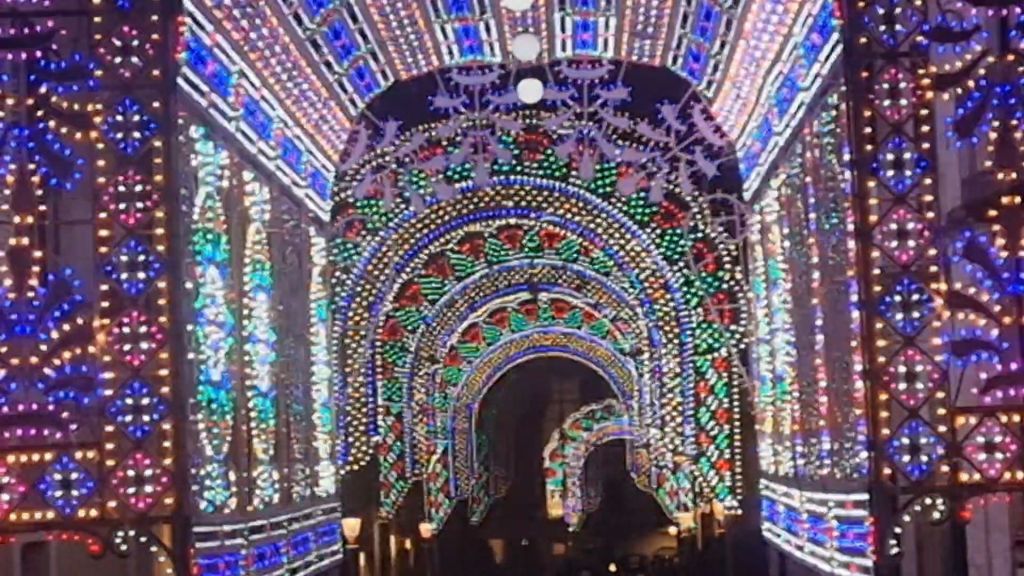 Da kommt auch schon das nächste Feuererk. und es will gar nicht mehr aufhören. Schätzungsweise 20 Minuten lang Feuerwerk! Dann komme alle wieder zurück. Es geht durch die Lichterallee hindurch. Der Domplatz ist nun auch beleuchtet. Es sieht einfach wunderschön aus!