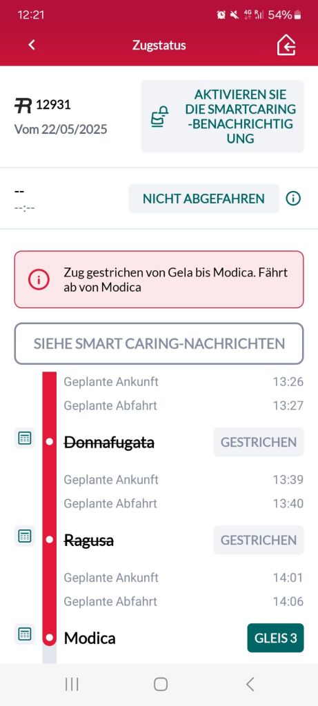 Eigentlich wollte ich nach Ragusa mit der Bahn fahren. Aber hier hat nich die italienische Bahn, die ich bisher als sehr zuverlässig empfunden habe, ein Stück enttäuscht.