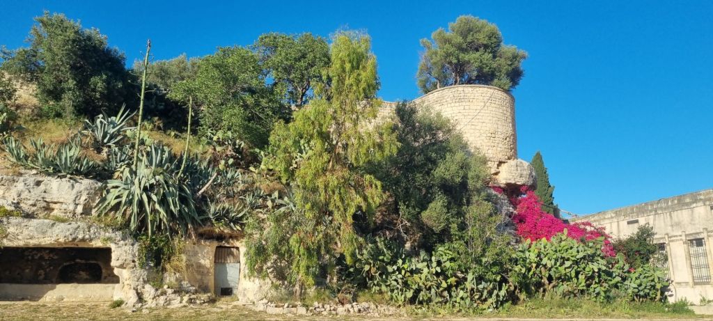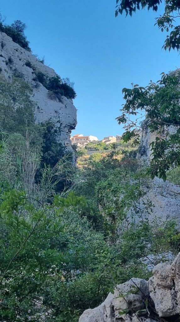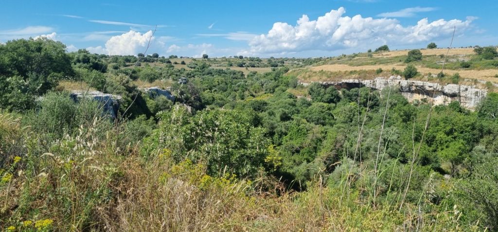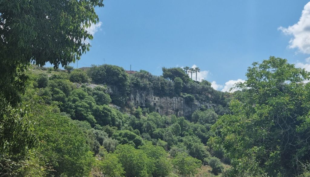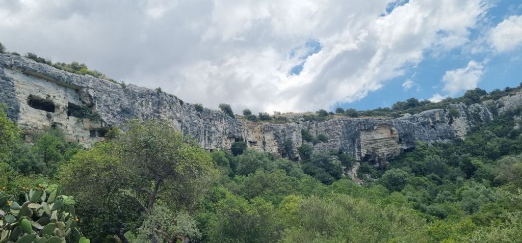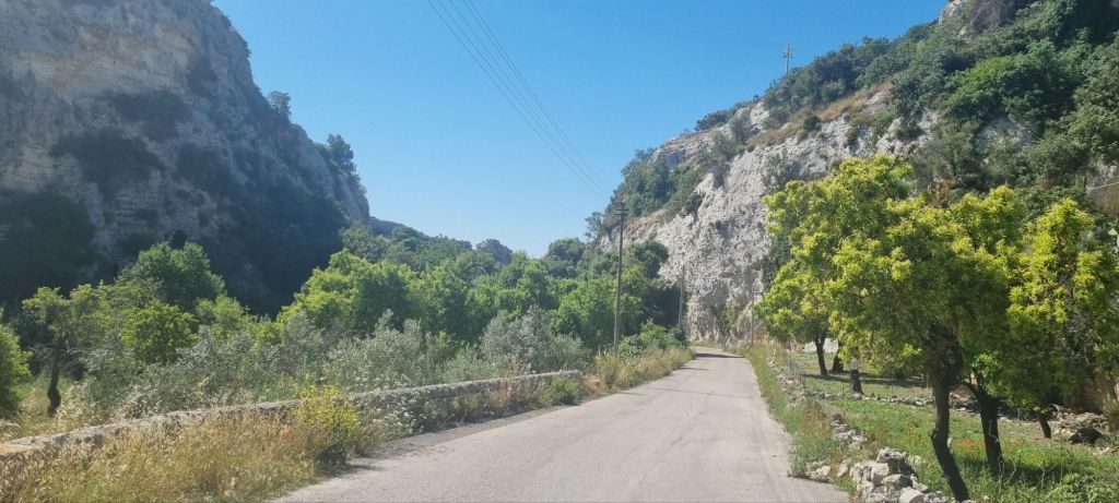 Die nächste Etappe heißt Ispica, dazwischen liegt ein Naturpark in einer Schlucht. Ich teile die Strecke und es geht erstmal nur bis zum Anfang des Parkes. Nebenstraßen bis dorthin – hey, alles easy. Aber dann… das Tal beginnt und der Weg wird holprig und steinig. Der Letzte Kilometer hat es dann doch in sich, inklusive Gestrüpp. Ich bin gerade noch italienisch-pünktlich (also nicht mehr als 10 Minuten zu spät) am Treffpunkt mit der Gastgeberin für meine Unterkunft. Ein nettes kleines Häuschen.