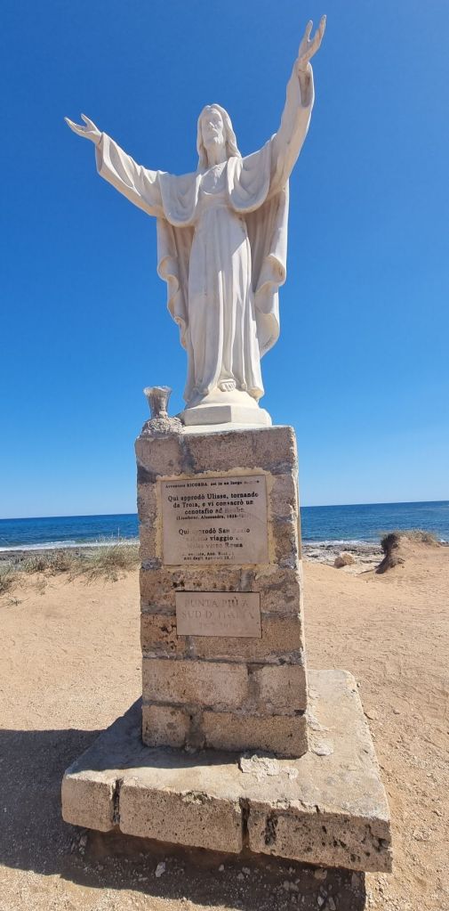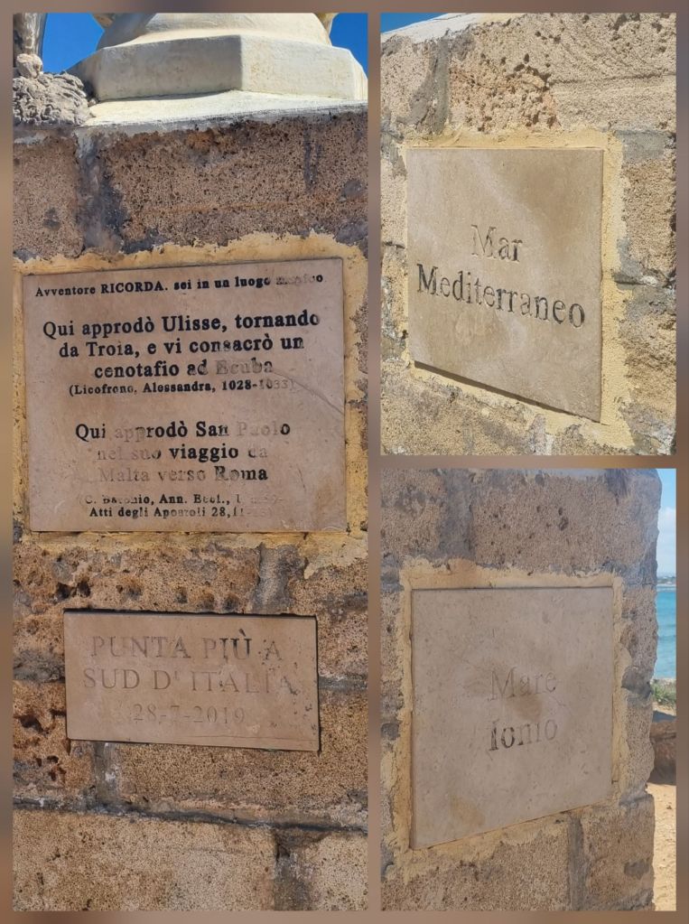 Hier treffe ich wieder auf das Ionische Meer, das hier mit dem Mittelmeer zusammenfließt. Aber es endet oder beginnt hier auch der E1-Europawanderweg, der bis zum Nordkap führt.