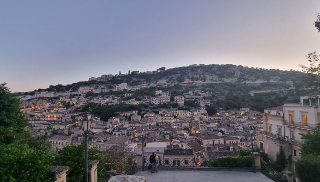 Wiedermal völlig unvorbereitet überrascht mich Modica mit seiner Größe und Schönheit. Was doch der Anfang eher trist und unscheinbar. Das änderte sich aber, je näher ich der Innenstadt und der dort gelegenen Altstadt kam. Auf dem Weg in die Altstadt werde ich noch vom Bimmel-Tourizug überholt, als ich am Abend doch noch mit der letzten Runde mitfahren kann, bin ich ganz glücklich. Einfacher kann man keinen Eindruck vom Ort bekommen. Modica ist eine der Barock-Städtchen auf Sizilien. Schöne Fassaden mit schön verzierten Balkonen. Gelegen an zwei Berghängen um das Tal gibt es gerade in der Dämmerung sehr schöne Ausblicke.