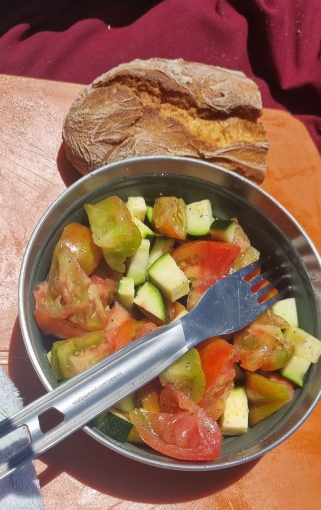 Als mir die Gastgeberin dann auch noch eine Melone schenkt, weiß ich fast nicht, was ich sagen soll. Die Nudeln und Tomatensauce, die sie mir da lässt, freuen mich wirklich sehr, denn Etwas warmes hatte ich nicht eingeplant. Und das reicht glatt für morgen auch noch! Nicht das ich nicht etwas vorbereitet gewesen wäre, aber so ist besser.