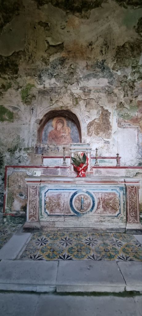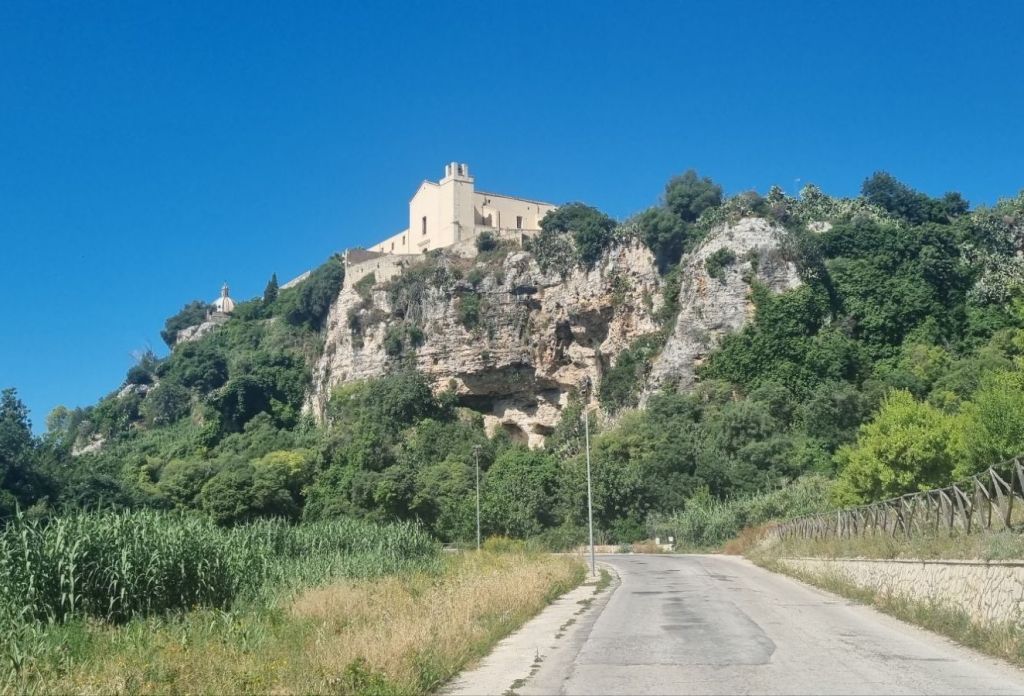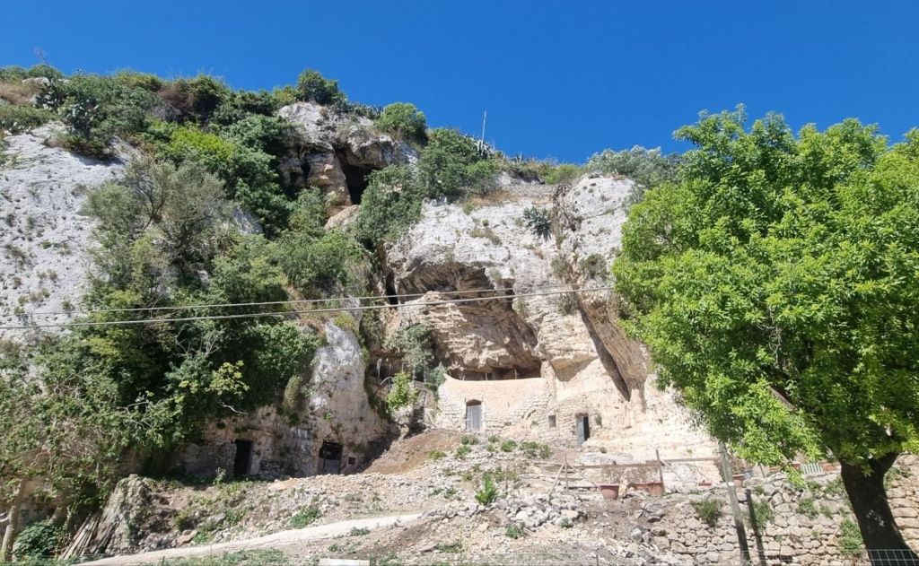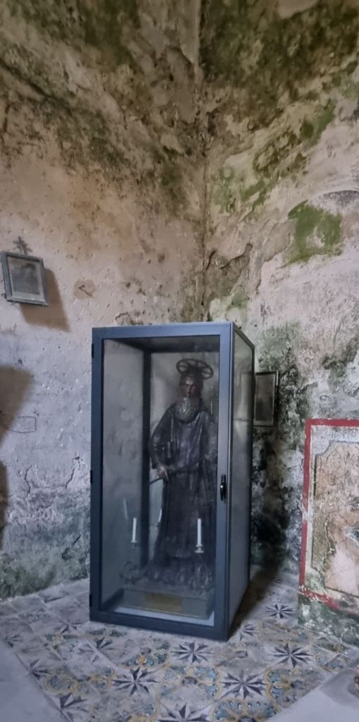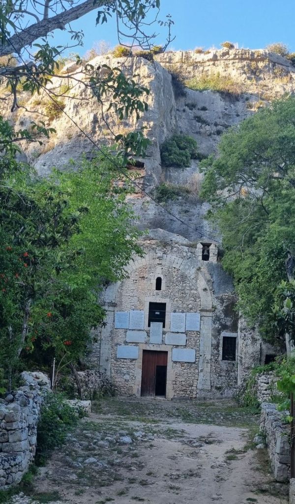 Und so ich bin froh, als nach der nächsten Kurve endlich Häuser auf dem Felsen stehen. Ispica ist in Sicht. Um 19.00 Uhr komme ich endlich an. Um 10.30 Uhr bin ich gestartet. In Ruhe, es sollten ja nur knapp 12 km sein. Aber was für welche! Aber auch das hab ich geschafft! Die letzten Höhlen werden als Lager für kleine Gärten genutzt und dann ist noch eine kleine Felsenkirche am Talausgang. Ich kann sie zufällig gerade besichtigen und schon geht es hoch in den Ort.