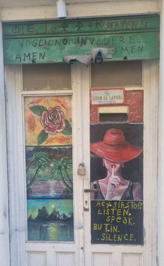 An der nächsten Nebenstraßenabzweigung auf meiner Route habe ich mehr Glück. Es ist tatsächlich ganz normal bewohnt und begehbar. Hier gibt es dann wirklich Hundegebell, aber hinter dem Zaun. Also in Ruhe weiter. Leider oder zum Glück verstehen italienische Hunde meine deutschen Flüche nicht…